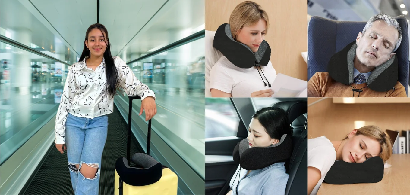 Enjoy restful travel with our memory foam neck pillow, crafted to contour perfectly toyour neck for support and comfort wherever you go.