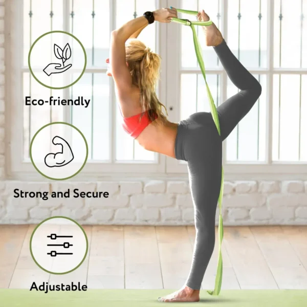 The Yoga Strap with D-Ring Buckle is designed to assist controlled movement and secure holding across yoga, stretching, and therapeutic practice.
