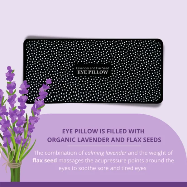 The Lavender & Flax Seed Eye Pillow is made from soft cotton and filled with a natural blend of flax seeds and lavender.