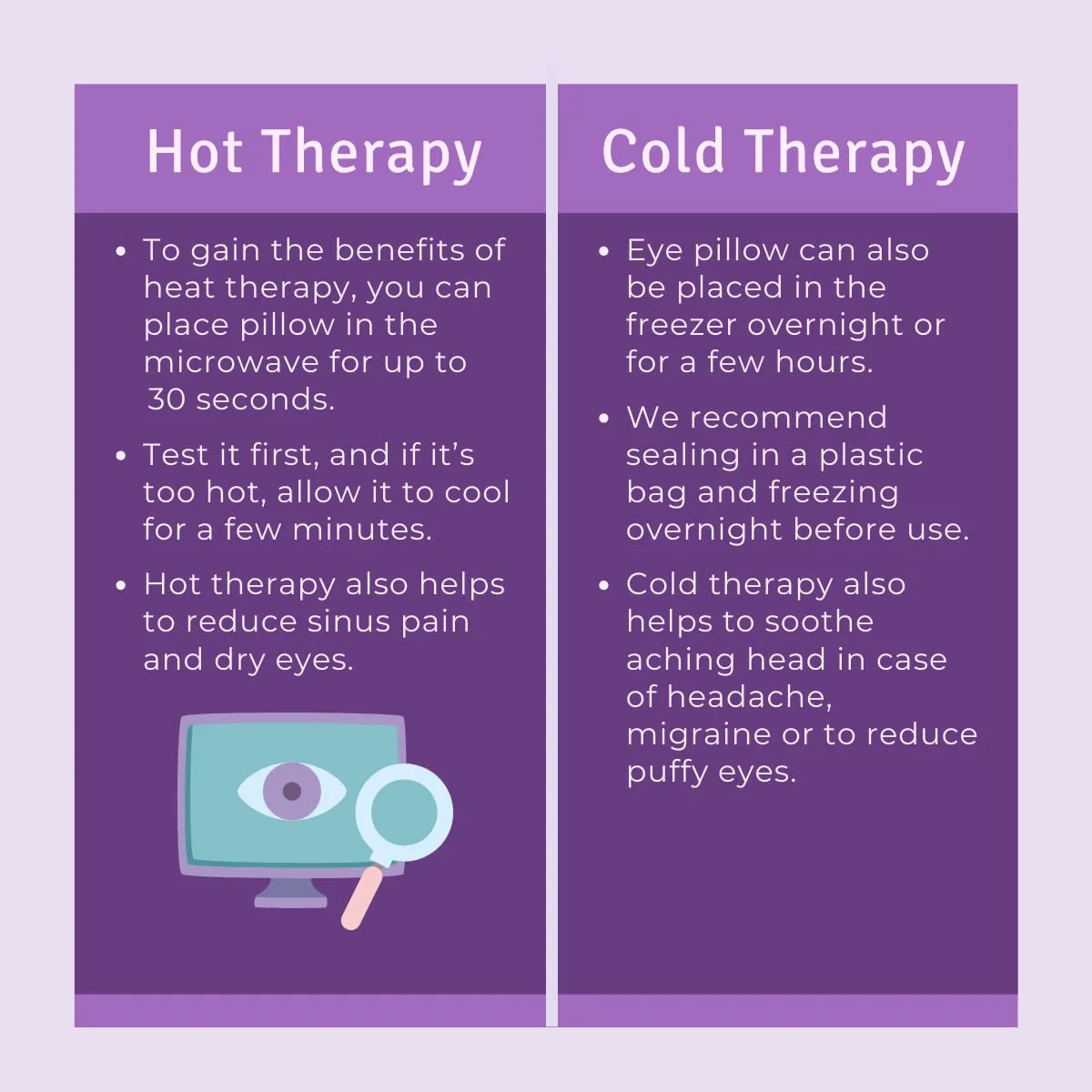 The natural weight of flax seeds provides light pressure around the eyes and sinuses to ease tension, headaches, and fatigue.